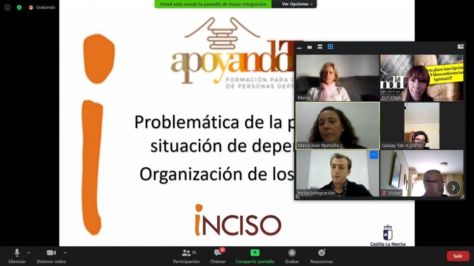Las personas cuidadoras de personas con dependencia de Castilla-La Mancha pueden recibir formación especializada, para mejorar la calidad de sus cuidados y su bienestar físico y mental, gracias al programa del Gobierno regional ApoyandoT, puesto en marcha por la Consejería de Bienestar Social de Castilla-La Mancha y desarrollado por la Asociación INCISO Integración.