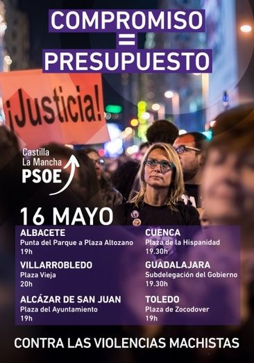 El PSOE de C-LM se suma a las concentraciones feministas para exigir al gobierno de Rajoy los 200 millones comprometidos en el Pacto de Estado contra la Violencia de Género