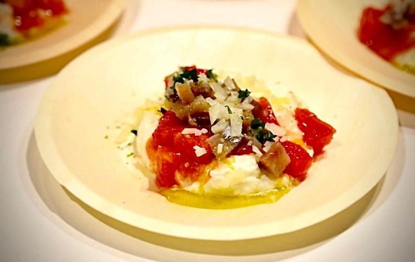 “He hecho una ensalada muy sencilla con una base de espuma de queso manchego, tomate aliñado y sardina