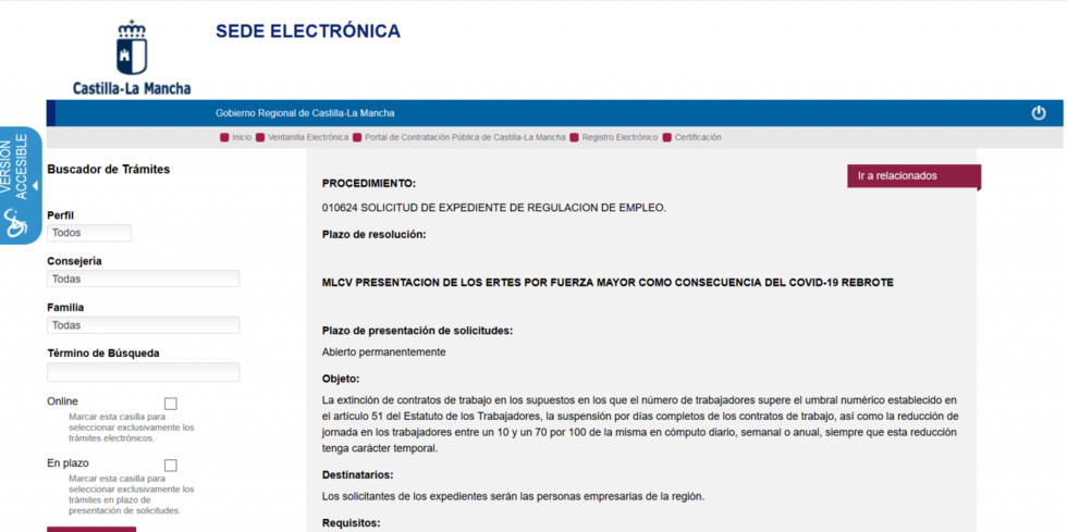 La consejera de Economía, Empresas y Empleo, Patricia Franco, ha informado de la habilitación de una nueva plataforma para la tramitación de ERTEs por causa de fuerza mayor con motivo de rebrote: https://www.jccm.es/tramitesygestiones/presentacion-de-los-ertes-por-fuerza-mayor-como-consecuencia-del-covid-19-rebrote