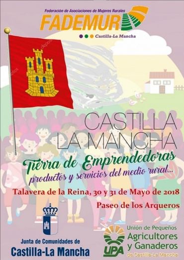 La Federación de Asociaciones de Mujeres Rurales, FADEMUR de Castilla-La Mancha, participará de manera activa en los actos de celebración del día de la región que este año se desarrollará en la toledana localidad de Talavera de la Reina. En concreto, la Feria Tierra de Emprendedoras dará comienzo a las 11 de la mañana del miércoles día 30 y concluirá a las 22 horas. El día 31 también estará instalada en el mismo Paseo y su horario será hasta las 15 horas.