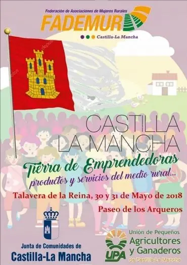 La Federación de Asociaciones de Mujeres Rurales, FADEMUR de Castilla-La Mancha, participará de manera activa en los actos de celebración del día de la región que este año se desarrollará en la toledana localidad de Talavera de la Reina. En concreto, la Feria Tierra de Emprendedoras dará comienzo a las 11 de la mañana del miércoles día 30 y concluirá a las 22 horas. El día 31 también estará instalada en el mismo Paseo y su horario será hasta las 15 horas.
