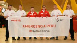 José López, Antonio García, Antonio Cobos, Lorenzo Alvarez, Angel Pardal y Francisco Luque, del Consorcio Provincial de Bomberos de Málaga salieron ayer de la T4 del Aeropuerto Adolfo Suárez Madrid-Barajas con destino a Lima (Perú). Su principal misión como expertos en catástrofes naturales es trasladar e instalar cuatro plantas potabilizadoras para abastecer con agua potable a 16.000 personas por día en las zonas de Piura, Trujillo, Huarmey y Chosica, de las más devastadas por el fenómeno “El Niño Costero”.