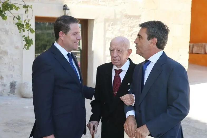 El presidente de Castilla-La Mancha, Emiliano García-Page, junto al ganadero de reses bravas, Victorino Martín Andrés, durante su última aparición pública el pasado 13 de septiembre en Cuenca con motivo de la entrega de los Premios Nacionales de Cultura (Foto: Ignacio López // JCCM).