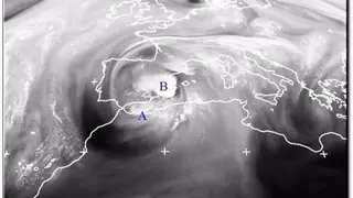 Las DANAS, son las encargadas de fabricar nubes de gran desarrollo vertical que, a su vez, descargan ingentes cantidades de agua sobre un mismo lugar en un espacio de tiempo relativamente corto. Para que eso ocurra, tiene que haber una borrasca en la superficie, a ser posible cerca de una fuente importante de vapor de agua.