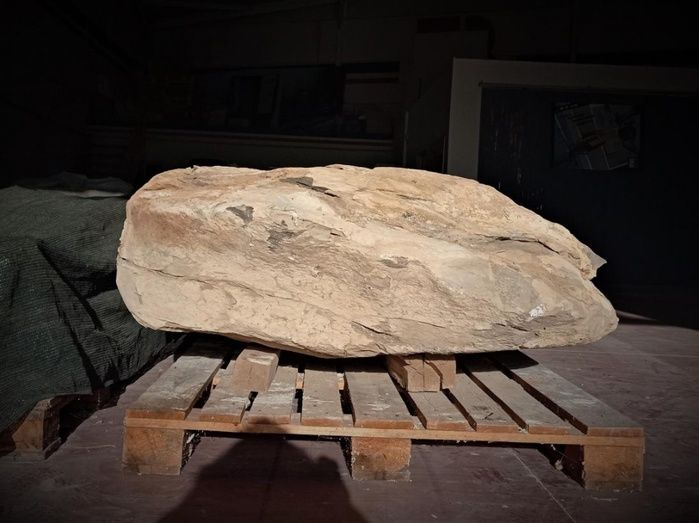 Un gran bloque de roca caliza, de varias toneladas de peso, que contiene restos óseos de un posible dinosaurio del Cretácico Inferior de hace unos 126-129 millones de años, ha sido trasladado esta semana al Museo Paleontológico de Castilla-La Mancha (MUPA) para su estudio.