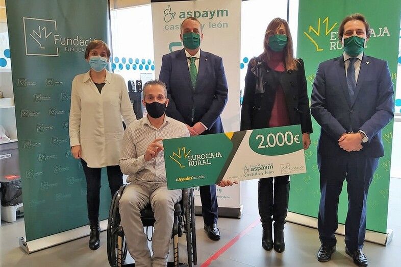 La Fundación Eurocaja Rural ha entregado a Aspaym Castilla y León (Asociación de personas con lesión medular y otras discapacidades físicas), un cheque valorado en 2.000 euros como beneficiaria de la segunda convocatoria de 'Ayudas Sociales Frente al COVID-19', en concreto la relativa a la categoría 'Atención Sanitaria, Sociosanitaria y Tercera Edad', y a la que optaron finalmente más de 70 proyectos de todo el ámbito de actuación donde opera la entidad financiera: Castilla-La Mancha, Madrid, Valencia, Murcia y la provincia de Ávila.