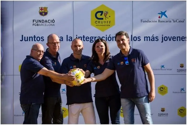 Iniesta acudió al acto y estuvo acompañado en el mismo por distintas personalidades. También estuvieron presentes el alcalde Fuentealbilla, Ángel Salmerón; la directora de la Fundación Cruyff, Pati Roura; el director de Área de Acción Comercial y Educativa de la Fundación la Caixa, Xavier Bertolín; y el vicepresidente del Barcelona, Jordi Cardoner, que arroparon a Iniesta en la presentación de esta campaña que busca promover el deporte como elemento cohesionador. De ahí la creación del ‘Cruyff Court’ para la práctica y uso entre jóvenes y niños en situación desfavorable. El tamaño del recinto se puede entender como un homenaje a la figura de Cruyff y su filosófica futbolística, ya que en su etapa como entrenador rompió moldes incorporando los ‘rondos’ a los entrenamientos. Ahora el calentamiento de un equipo de fútbol no se entendería sin este ejercicio tan sencillo y a la vez practico para mejorar el control de la pelota.
