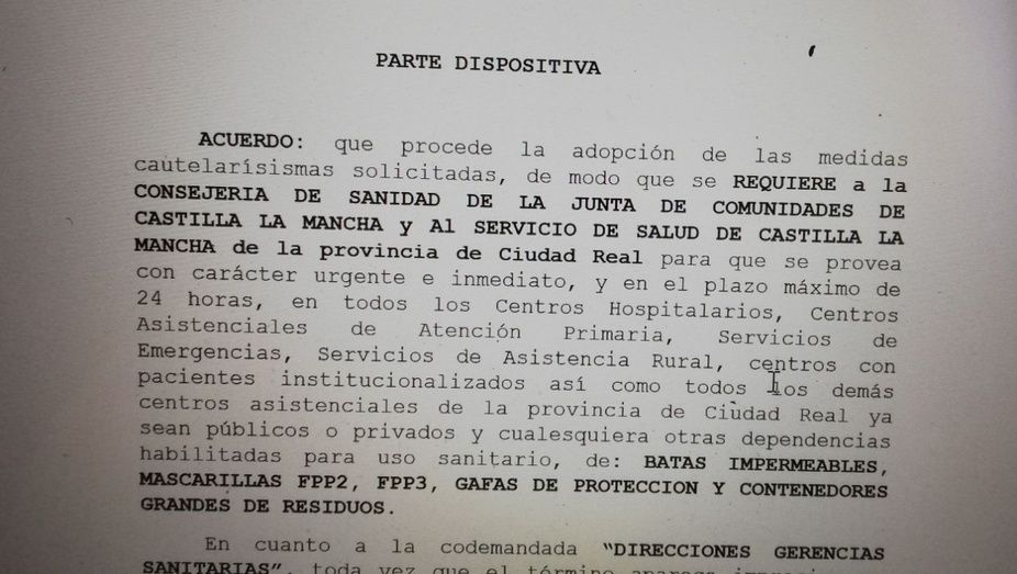 Juzgados de Ciudad Real y Toledo requieren a las autoridades sanitarias de Castilla-La Mancha para que provean de equipos de protección a hospitales y centros sanitarios frente al COVID-19