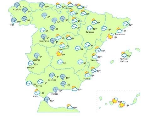 Tendencia a que las temperaturas se vayan recuperando en la mayoría de las comunidades, salvo en zonas aisladas del nordeste de Cataluña.