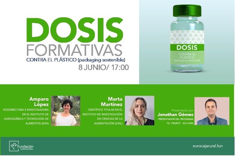 Con arreglo a su compromiso con la protección del medio ambiente, la Fundación Eurocaja Rural ha organizado la cuarta 'Dosis Formativa', titulada 'Contra el plástico (packaging sostenible)', donde se analizarán el próximo 8 de junio, a las 17:00 horas, numerosas alternativas a los envases tradicionales, presentando otros materiales sostenibles y ecológicos, de la mano de las expertas en biopolímeros Amparo López y Marta Martínez.