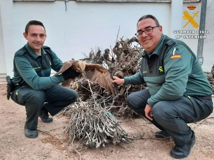 La rapaz fue localizada por un particular en el paraje La Carrasca, quien tras su hallazgo avisó de inmediato a la Benemérita de Montealegre que desplazó hasta dicho lugar a una patrulla de servicio, procediendo sus componentes a la captura e inmovilización de la rapaz para su traslado, con las debidas garantías de seguridad, al Centro de Recuperación de la Fauna Salvaje de Albacete.