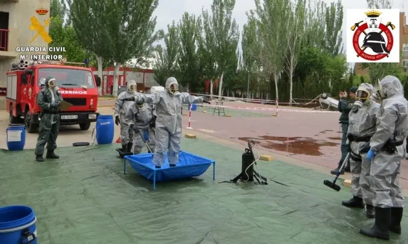 Dentro del Plan Específico de Instrucción (P.E.I.) para Unidades de defensa N.R.B.Q. de la Guardia Civil, efectivos de la Benemérita de Albacete y del Servicio Contra Incendios albacetense han realizado un simulacro de emergencia conjunto, ante una supuesta amenaza de origen químico.