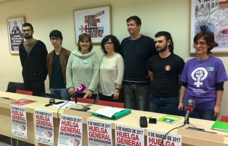 La Plataforma por la Escuela Pública de Castilla-La Mancha, integrada por sindicatos de docentes, asociaciones de estudiantes y de padres y madres, ha llamado hoy a toda la comunidad educativa de CLM a secundar este jueves, 9 de marzo, la Huelga General en la Enseñanza convocada en todo el Estado y en todos los niveles, desde Educación Infantil hasta la Universidad, para exigir la derogación definitiva de la LOMCE y la reversión de los recortes en Educación.