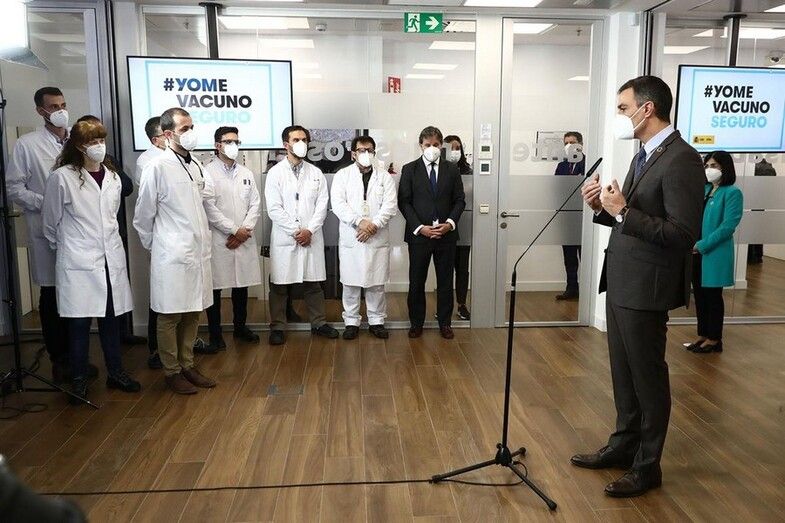 El presidente ha estado acompañado en la visita por la ministra de Sanidad, Carolina Darias, el presidente de la Junta de Comunidades de Castilla-La Mancha, Emiliano Garcia-Page y el CEO de Janssen España, Luis Diaz Rubio.
