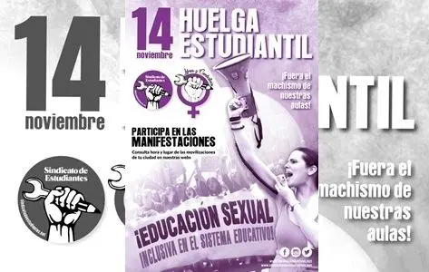 Por estas razones, desde el Sindicato de Estudiantes y Libres y Combativas convocamos a la juventud a una gran huelga general estudiantil el próximo 14 de noviembre en todo el Estado, y a la celebración de manifestaciones multitudinarias. Los objetivos de esta gran huelga son muy concretos. Exigir al gobierno la puesta en marcha inmediata de una asignatura de educación sexual inclusiva, evaluable y obligatoria en todos los centros de estudio, tanto públicos como privados, para que sin importar nuestro género, orientación sexual o identidad, podamos ser lo que somos. Una asignatura para la enseñanza primaria, secundaria, bachillerato y formación profesional que sirva para educar en libertad contra el machismo y el sexismo, el maltrato y la cultura de la violación, contra la homofobia y la transfobia.