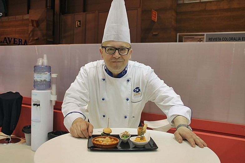 Así ha presentado estas cinco tapas: judías blancas con perdiz, espuma de gachas con picadillo de matanza, almogrote de berenjenas con atún, hamburguesa de ciervo con rúcula y pan de tomate y, por último, duelos y quebrantos.