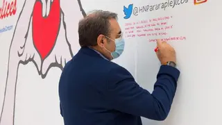 Con el deseo “de vacunas para el Covid y que 2021 termine sin este bicho”, el consejero de Sanidad de Castilla-La Mancha, Jesús Fernández Sanz, ha inaugurado la pared de los buenos deseos del Hospital Nacional de Parapléjicos, una iniciativa interactiva que combina el mundo de las redes sociales (con el hashtag #DeseosdeCorazón) y el arte mural.