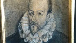 El joven artista toledano Juan José Romero Cortina, con su retrato a carboncillo sobre Cervantes y realizado con 15 años, en equilibrado y suave cromatismo, ha participado en la actividad aportando la imagen del verdadero homenajeado, Miguel de Cervantes.