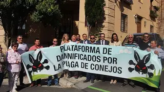 Un grupo de representantes de la Plataforma de Damnificados por la Plaga de Conejos, que representa a agricultores afectados de más de 270 pueblos de Castilla-La Mancha, han iniciado una serie de movilizaciones que comenzaron el pasado jueves 14 de junio, con una concentración en la puerta de las Cortes de Castilla-La Mancha, coincidiendo con la celebración del Pleno ordinario mensual.
