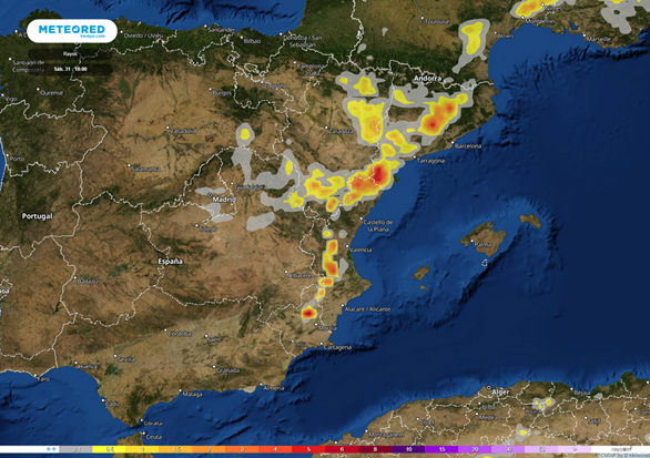 Se prevé que el sábado una vaguada en niveles altos de la troposfera provoque chubascos en la mitad norte peninsular. En Cataluña, Teruel y en la Comunidad Valenciana las precipitaciones podrán ser localmente fuertes e irán acompañadas de tormenta. En el sur peninsular, mientras tanto, predominarán los cielos despejados. Las temperaturas diurnas descenderán de manera generalizada.