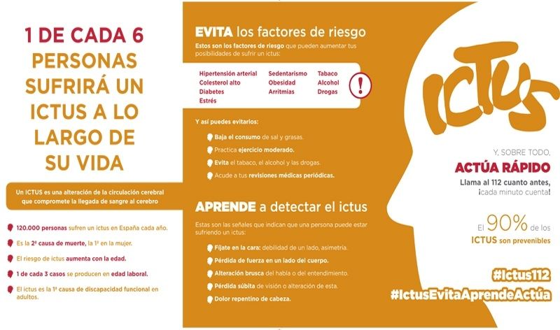 Son algunos de los datos que se han dado hoy a conocer durante la presentación de la campaña “ICTUS – Evita, aprende, actúa”, en base a las últimas cifras de la Sociedad Española de Neurología (SEN), entidad, que junto a Fundación MAPFRE y Freno al ICTUS promueven esta iniciativa, que también cuenta con el apoyo de Comunidad de Madrid y Ayuntamiento de Madrid. Su objetivo es informar a la sociedad sobre qué es un ictus, qué factores de riesgo y síntomas están detrás de esta enfermedad y cómo hay que actuar para sufrir el menor daño posible.