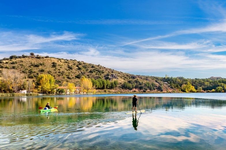 Y si te atrae más el turismo activo y disfrutar de actividades acuáticas, pero a la vez hacer una inmersión cultural conociendo algunos lugares quijotescos, no lo dudes, tienes que venir al Parque Natural de las Lagunas de Ruidera (entre las provincias de Ciudad Real y Albacete), donde nace el río Guadiana; un imprescindible es acercarte a la Cueva de Montesinos (reservas llamando al ayuntamiento de Ossa de Montiel) en la que Cervantes ubica a don Quijote en el capítulo XXII de la Segunda Parte. Nuestro consejo: la gastronomía cervantina se puede saborear en los restaurantes de la zona, no te lo pierdas.