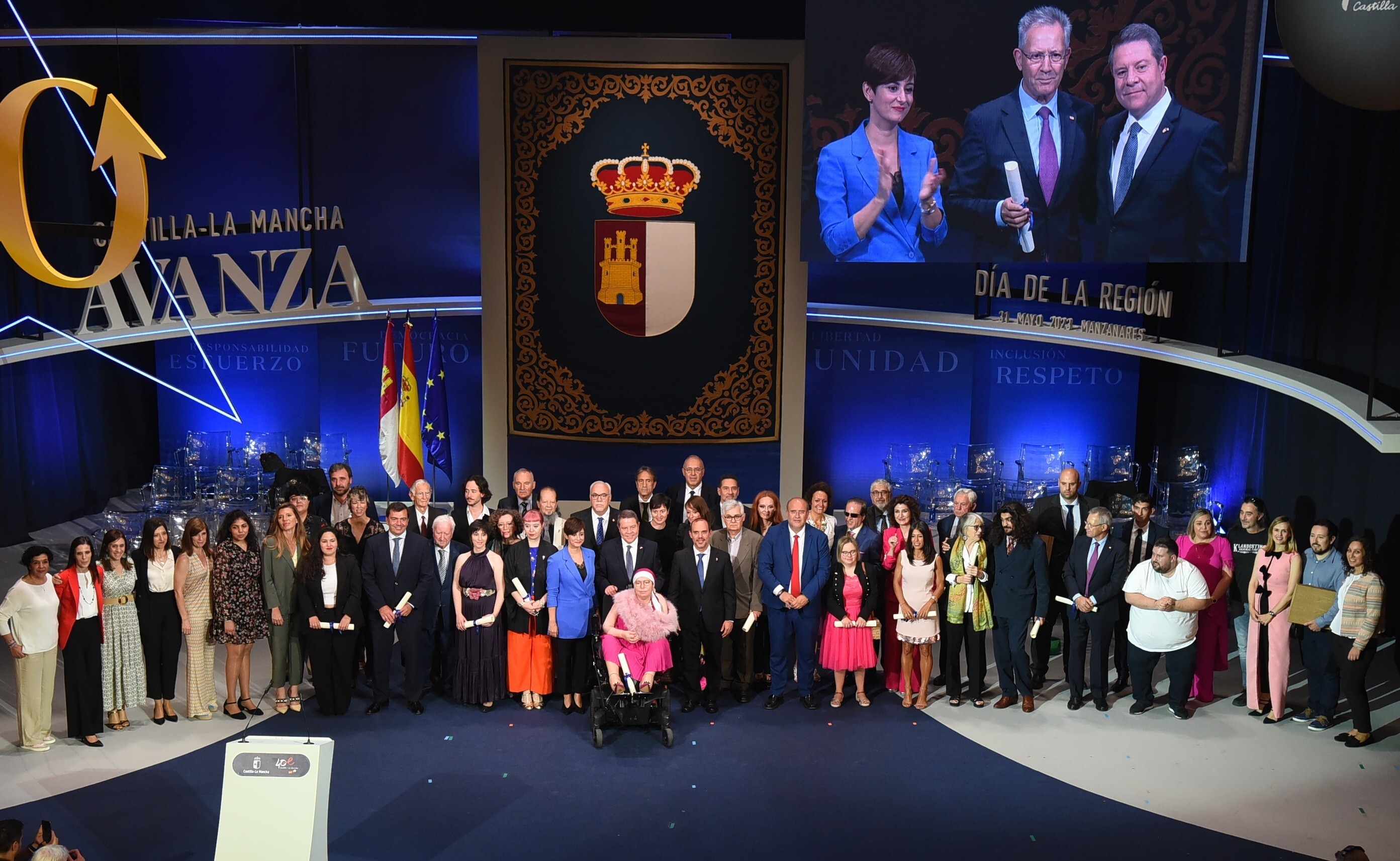 Así lo han recalcado en su discurso, tras recibir la Medalla de Oro en el acto institucional celebrado en el Gran Teatro de Manzanares (Ciudad Real), en el que se han entregado un total de 39 reconocimientos y distinciones que corresponden con la concesión de dos medallas de Oro, el nombramiento de seis Hijas e Hijos Adoptivos, 20 Hijas e Hijos Predilectos y la concesión de once placas al Mérito Regional.