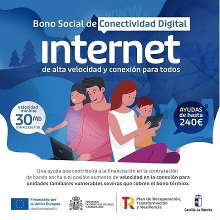 El Gobierno de Castilla-La Mancha ha informado que hasta el próximo 31 de agosto se puede solicitar el Bono Social de Conectividad. Se trata de una convocatoria que cuenta con una partida de 1.358.880 euros proveniente de los fondos Next Generation, transferidos a la Comunidad Autónoma a través de la Secretaría de Estado de Telecomunicaciones e Infraestructuras Digitales, para “financiar que los hogares en situación de ‘vulnerabilidad severa’ puedan contratar nuevos servicios de conexión a banda ancha fija o incrementar la velocidad de los ya contratados”.