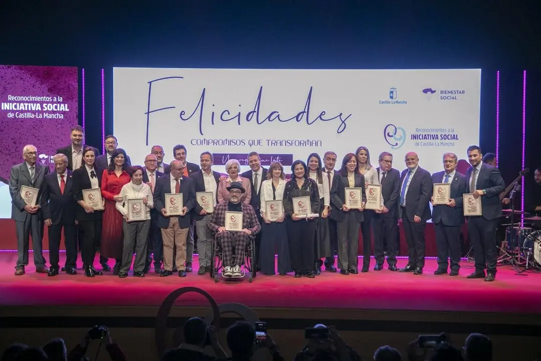 El Gobierno de Castilla-La Mancha celebró ayer por la tarde la gala de entrega de los Reconocimientos a la Iniciativa Social correspondiente al año 2024, que, en esta edición, la novena y con el lema de ‘Compromisos que transforman’, ha distinguido a 17 iniciativas, proyectos y trayectorias ejemplares en ámbitos como la acción social, la cooperación internacional, el voluntariado o la discapacidad.