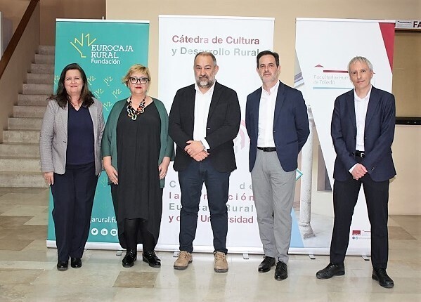 En el acto también han estado presentes el vicerrector de Cultura, Deporte y Responsabilidad Social, César Sánchez Meléndez; la decana de la Facultad de Humanidades de Toledo y directora de la Cátedra de Cultura y Desarrollo Rural Fundación Eurocaja Rural-UCLM, Rebeca Rubio; y el director de Relaciones Institucionales de Eurocaja Rural, Miguel Ángel Escalante.