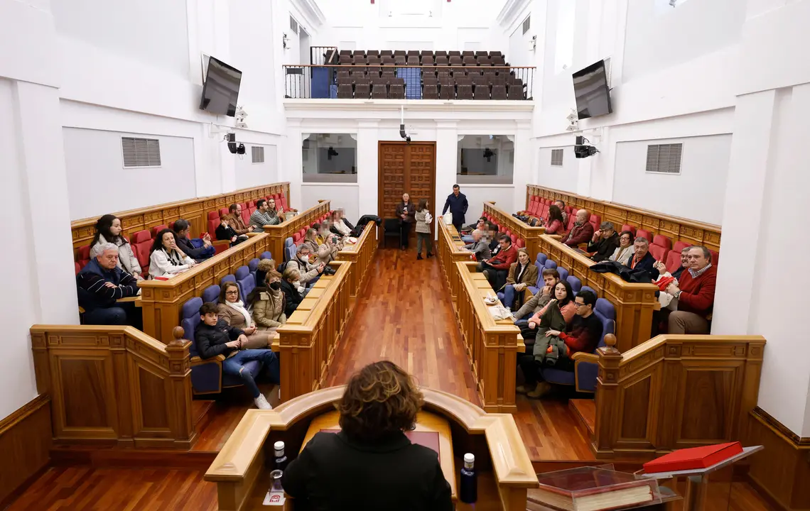 Un centenar de personas ha visitado este sábado el Convento de San Gil de Toledo, sede del parlamento regional, coincidiendo con la primera jornada de Puertas Abiertas de este 2024. Al grupo abierto de ciudadanos y ciudadanas que se han apuntado a recorrer el edificio, como cada mes, se le ha sumado una visita previa de la Asociación Gentes de Guadalajara, que cada año organiza la función teatral del Tenorio Mendocino, Fiesta de Interés Turístico Regional. Ambos grupos han completado un recorrido divulgativo por las principales estancias donde se desarrolla la actividad parlamentaria, incluidos el Salón de Plenos, las salas de comisiones, la Sala de la Mesa y la Biblioteca, finalizando en la terraza del edificio de grupos, con unas magníficas vistas sobre el río Tajo. Quienes quieran apuntarse a la jornada de Puertas Abiertas que se celebrará el mes de febrero pueden hacerlo ya contactando en el mail puertasabiertas@cortesclm.es o telefoneando al número 925 259 807. // Fotos: Carmen Toldos / Cortes CLM.