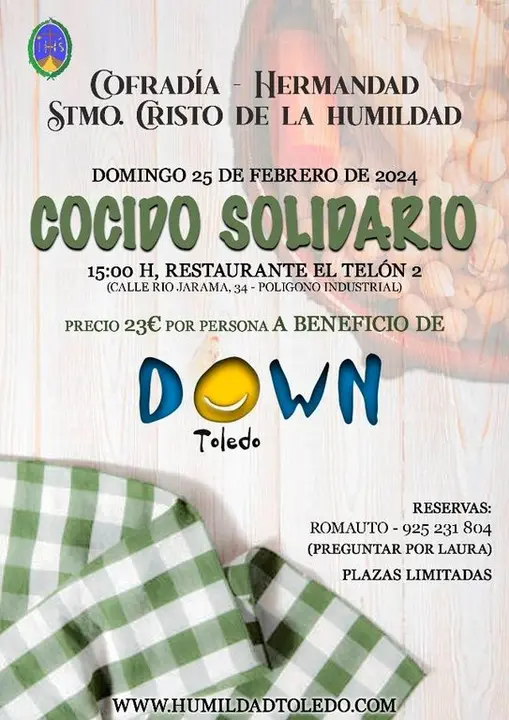 La Cofradía Hermandad del Santísimo Cristo de la Humildad de Toledo organiza el domingo, 25 de febrero, un Cocido Solidario a beneficio de DOWN Toledo.