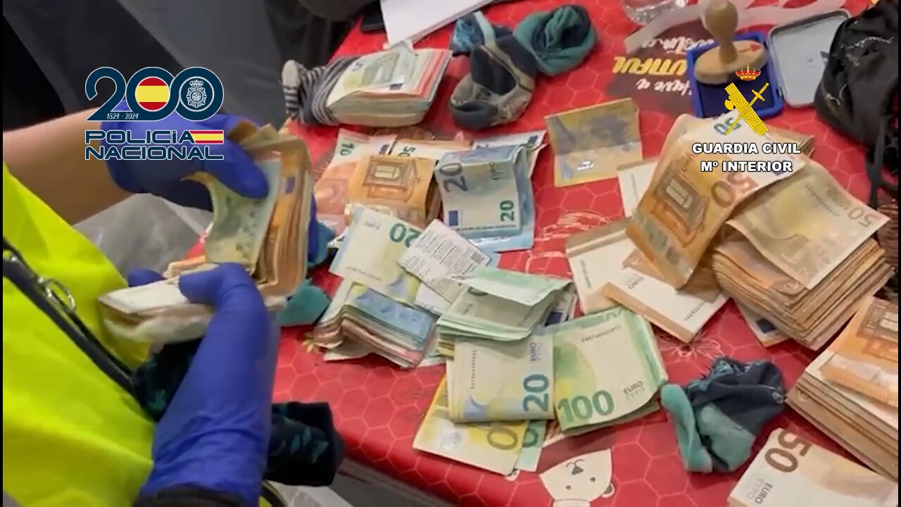 En los registros se incautó más de 73.000 euros, cuatro vehículos, 20 televisores y equipos de sonido de alta gama, 75 teléfonos móviles, 32 tarjetas SIM, numerosas tarjetas bancarias, dos patinetes eléctricos, 3 réplicas de armas largas, 3 pistolas de airsoft y otras armas prohibidas. Además, se bloquearon 81 cuentas bancarias a nombre de los principales investigados.