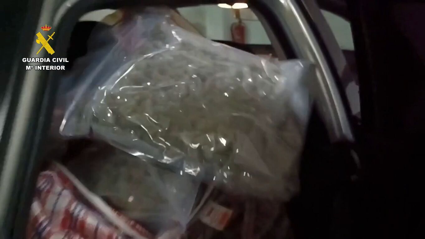 Una vez identificado su conductor y único ocupante, se realizó una inspección del vehículo, localizando en el maletero del mismo seis bolsas de grandes dimensiones que contenían 67 kilos de marihuana, en forma de cogollos, prensada y envasada al vacío.