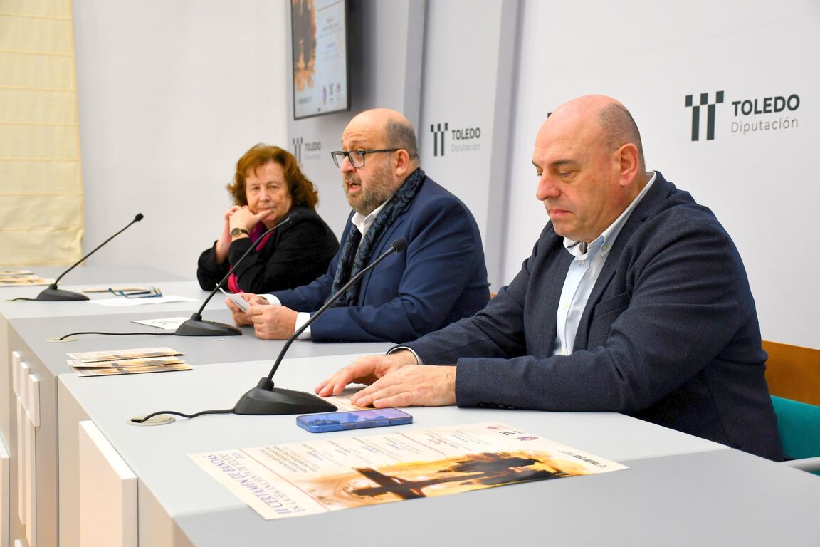 El diputado de Cultura, Tomás Arribas, ha presentado la programación esta mañana en la Diputación de Toledo acompañado por el presidente de la Junta de Cofradías y Hermandades de Toledo, Juan Carlos Sánchez; la concejal de Cultura del Ayuntamiento de Toledo, Ana Pérez; y el coordinador de Cultura de la Diputación provincial, Emilio Martínez, poniendo en valor la colaboración institucional. También ha estado presente la diputada provincial y alcaldesa de Corral de Almaguer, Manuela Lominchar.
