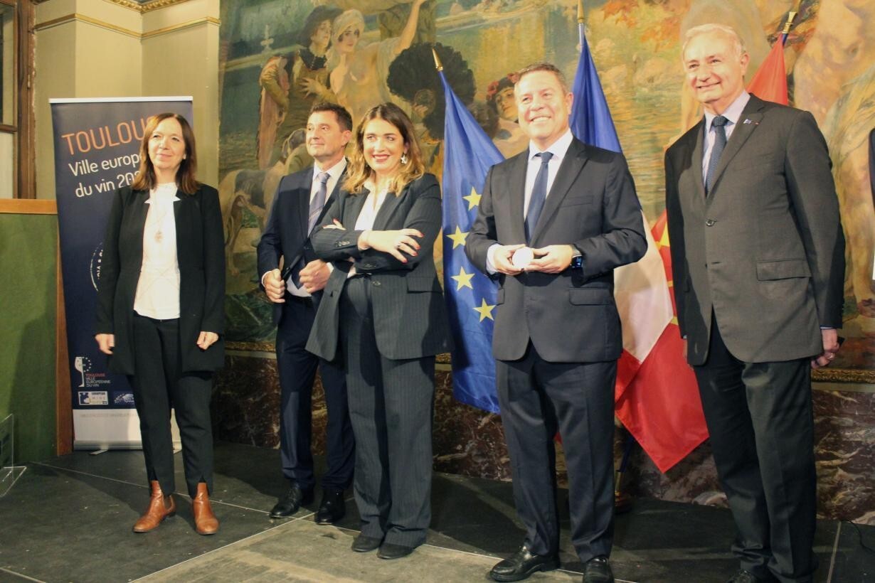 El jefe del Ejecutivo castellanomanchego recibió esta distinción en el marco de la recepción que el alcalde de la ciudad, Jean-Luc Moudenc,ofreció como acto de bienvenida por los distintos eventos que en torno al vino se celebran este viernes y sábado en la que es la capital de la región francesa de Occitania, designada este año Capital del Vino de Europa.
