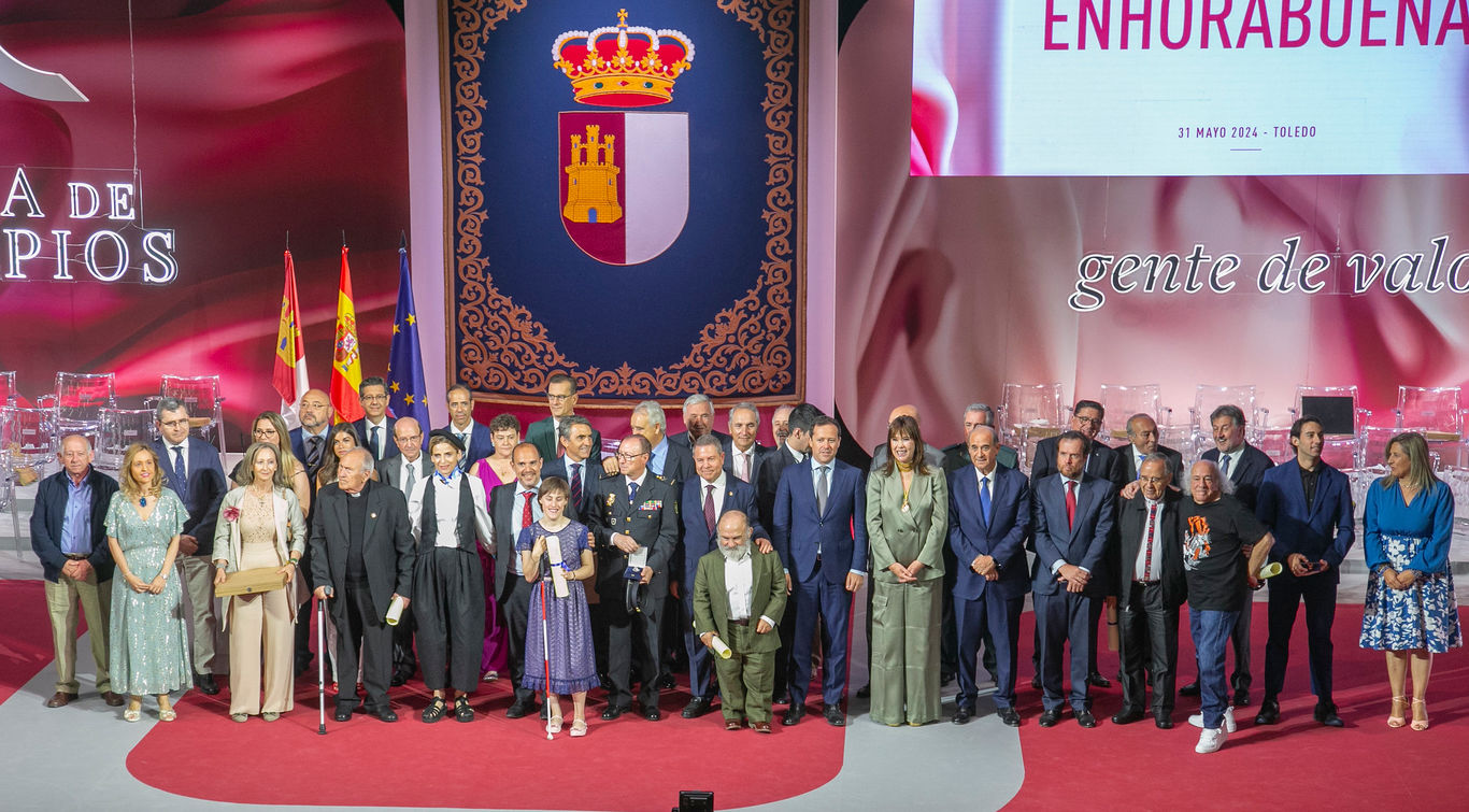 La presente edición se ha celebrado con el lema ‘Castilla-La Mancha: Tierra de principios, gente de valores’ y se han entregado tres Medallas de Oro, 13 nombramientos de Hijas e Hijos Predilectos, cinco distinciones a hijas e hijos adoptivos, 11 Placas de Reconocimiento al Mérito Regional, una Medalla Conmemorativa y otras seis Medallas Conmemorativas especiales con motivo de la designación de Castilla-La Mancha como Región Europea del Deporte.