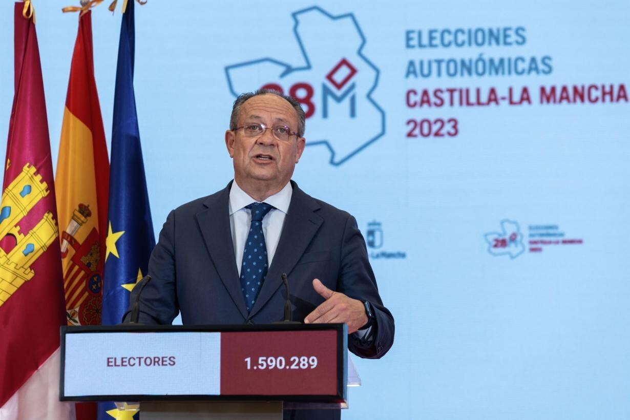 Más de 38.000 personas participarán en el dispositivo puesto en marcha por la Junta de Comunidades de Castilla-La Mancha para la organización de las elecciones a las Cortes regionales, que se celebran mañana, 28 de mayo, y en las que están llamados a las urnas 1.590.289 ciudadanos y ciudadanas. Este dispositivo ha sido presentado hoy por el consejero de Hacienda y Administraciones Públicas, Juan Alfonso Ruiz Molina, en una rueda de prensa que ha tenido lugar en las instalaciones de la Escuela de Administración Regional (EAR), en Toledo, donde se ha ubicado el Centro de Difusión de Datos de estos comicios.