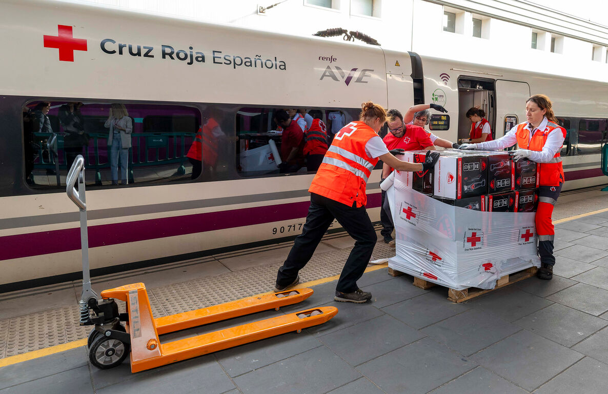 Este "Tren Solidario", que tendrá continuidad en el tiempo hasta que sea necesario, tiene como objetivo transportar suministros y materiales esenciales para las personas que han sufrido los efectos de las inundaciones provocadas por el paso de la DANA en la Comunidad Valenciana.