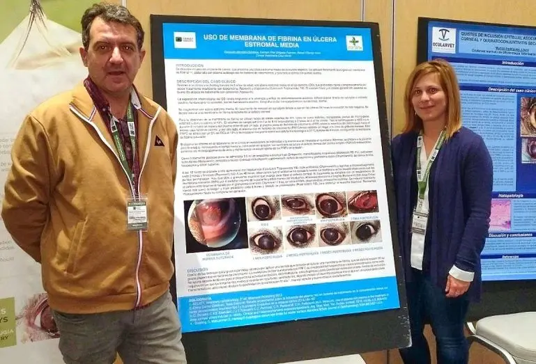 La Clínica Veterinaria Cruz Verde presentó el pasado fin de semana en el VII Congreso Nacional de Oftalmología Veterinaria celebrado en Madrid el uso de una técnica innovadora, «lo último en terapias regenerativas», que consiste en aplicar una membrana de fibrina elaborada a partir del propio plasma del paciente para reparar úlceras corneales «con resultados muy satisfactorios». Según ha informado a El Semanal de La Mancha la oftalmóloga, Consuelo M. Quintana, «suturar la membrana ha sido probado en perros pero esta técnica es extensible al resto de animales».