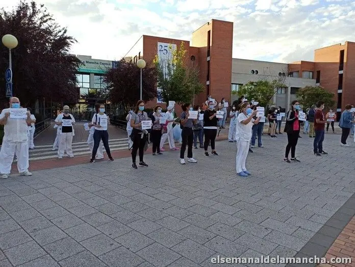 El movimiento “Sanitarios Necesarios” se concentró de nuevo este lunes en las puertas del Hospital General La Mancha Centro para defender una Sanidad Pública de calidad y para dar visibilidad “a la necesidad de contar con el número de profesionales y recursos adecuados”, tal como explicó a los medios de comunicación una de las participantes, la enfermera Nélida Lapresa, en nombre de las decenas de personas que se concentraron en silencio portando carteles reivindicativos.