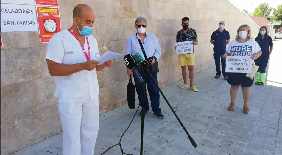 Formando un grupo de diez personas como máximo, ya que las medidas especiales que Sanidad ha impuesto a Alcázar de San Juan obligan a esta cifra, los celadores han vuelto a salir a la calle para poner en valor las funciones que realizan en los centros sanitarios y exigir equipos de protección, pues, aunque en el Mancha Centro no sucede, tal y como ha reconocido el portavoz de la Plataforma convocante (Reconocimiento para el celador, Ya!), Jesús Manuel Cruz, en muchos de los hospitales de nuestro país los celadores siguen recibiendo a los pacientes, acompañándolos en sus traslados y moviéndose por los distintos servicios en plena pandemia "con una simple bata y unos guantes".
