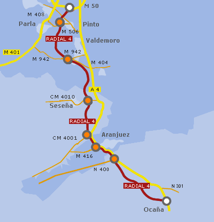 actuales en dos contratos, separando, por un lado, las autopistas del entorno de Madrid en un contrato (R-2, R-3/R-5, R-4, Eje Aeropuerto (M-12), Madrid-Toledo (AP-41) y Ocaña-La Roda (AP-36) y las dos de la AP-7 en otro contrato (Circunvalación de Alicante y Cartagena-Vera).