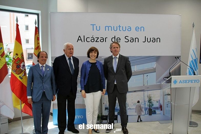 Rosa Melchor, alcaldesa de Alcázar de San Juan, acompañada por José María Juncadella, presidente de Asepeyo, Jorge Vilanova, subdirector general de la Mutua, y José Miguel Martín-Peñasco, director del centro asistencial, ha inaugurado las nuevas instalaciones de Asepeyo en la localidad, ubicadas en la calle Emilia Pardo Bazán, s/n (esquina con Rigoberta Menchú).