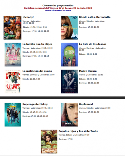 CARTELERA CINEMANCHA
