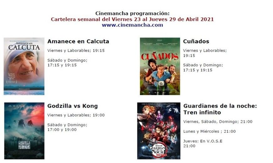 CARTELERA CINEMANCHA G.G.G. 23 de abril de 2021 (11:45 h.) Del viernes 23 al jueves 29 de abril Leer más