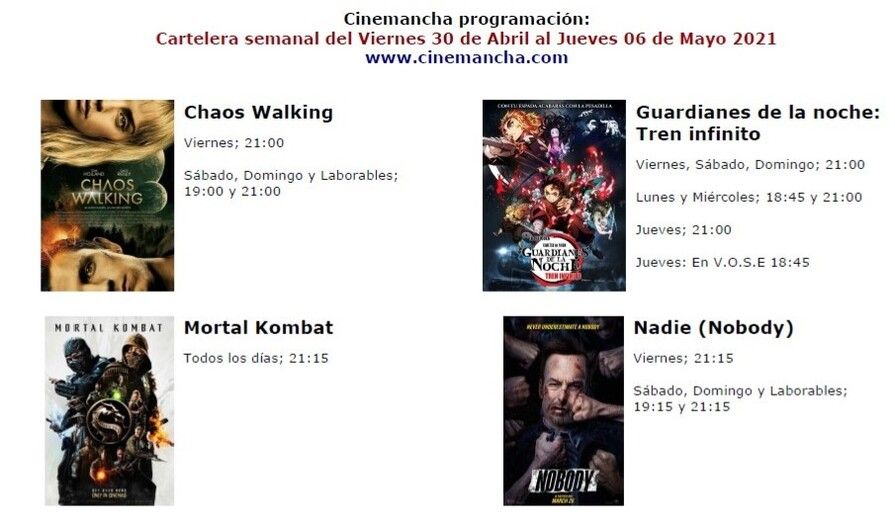 CARTELERA CINEMANCHA El Semanal 30 de abril de 2021 (15:39 h.) Del viernes 30 de abril al jueves 6 de mayo Leer más