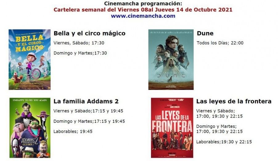 El Semanal 08/oct/21 - 13:48 Siguiente chevron_right También proyectan la película CRY MACHO todos los días a las 19:45 horas. Siguiente chevron_right