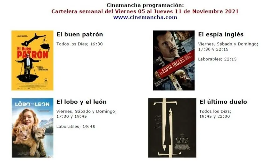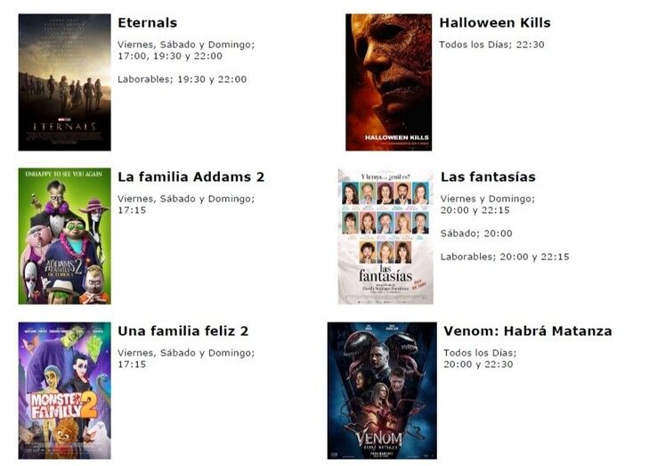 Además de las películas reflejadas también se proyecta el viernes, sábado y domingo a las 17:00 h, la película infantil " RON DA ERROR "
